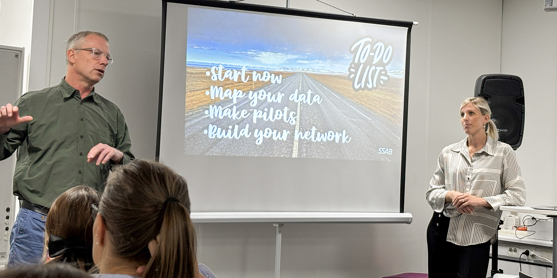 Från SSAB medverkade Sandra Ahlstrand, Digital Developer, och Johan Anderson, Emission Eliminator. De beskrev hur SSAB har arbetat med att strukturera upp sin egna data. De har samlat in och validerat information från produktionen och genomfört standardiseringsarbete med hjälp av SIS.